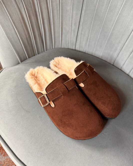 Suede sabot with fur