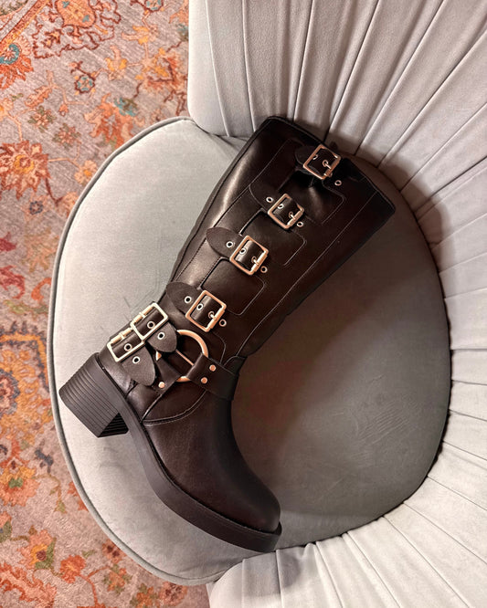 Biker boot with buckles