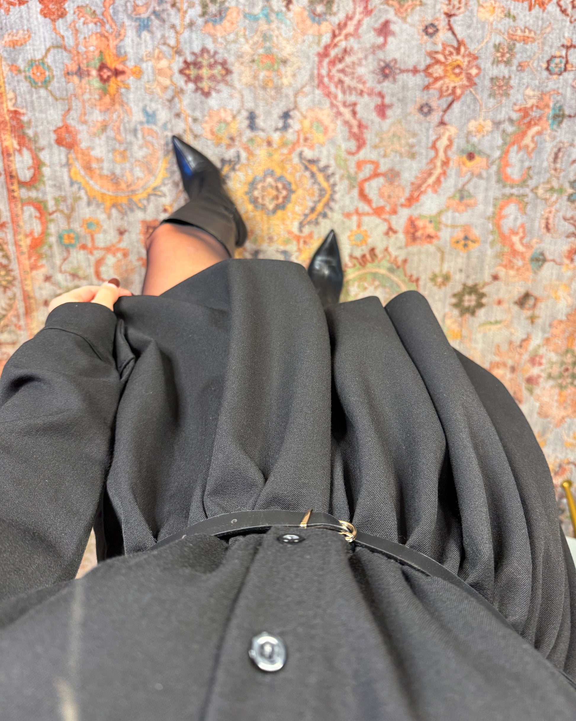 Abito a palloncino con cinturino in vita e colletto. Taglia unica.