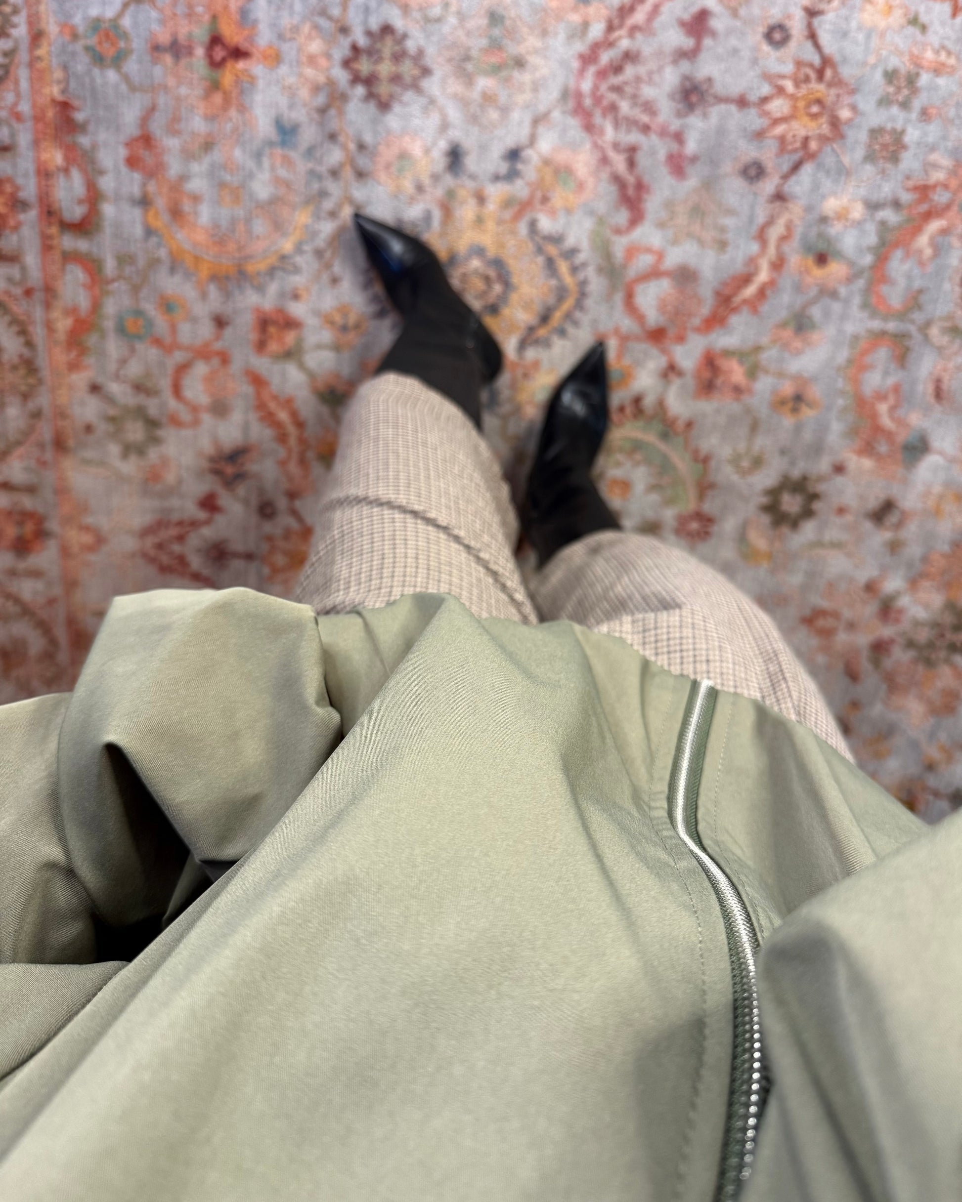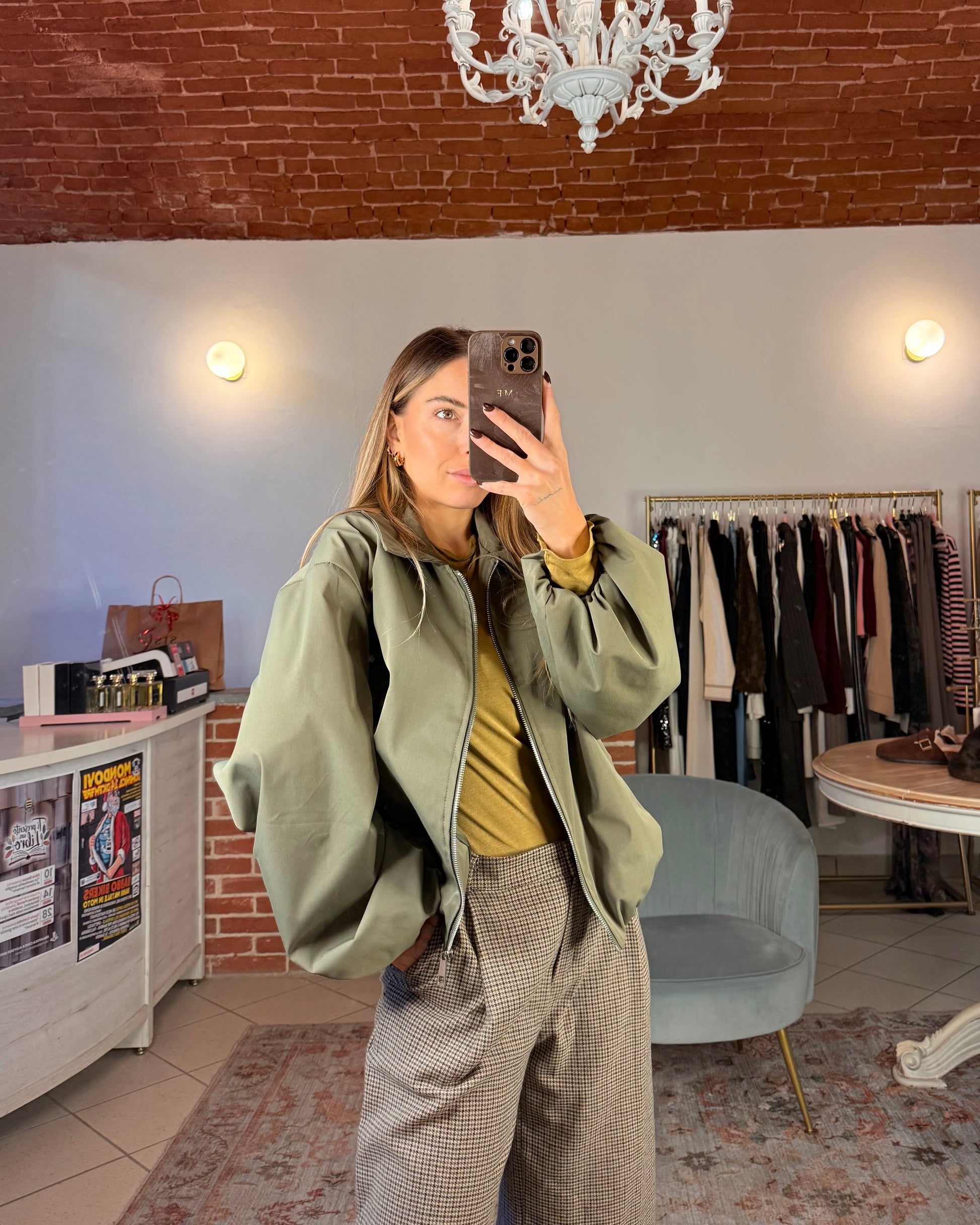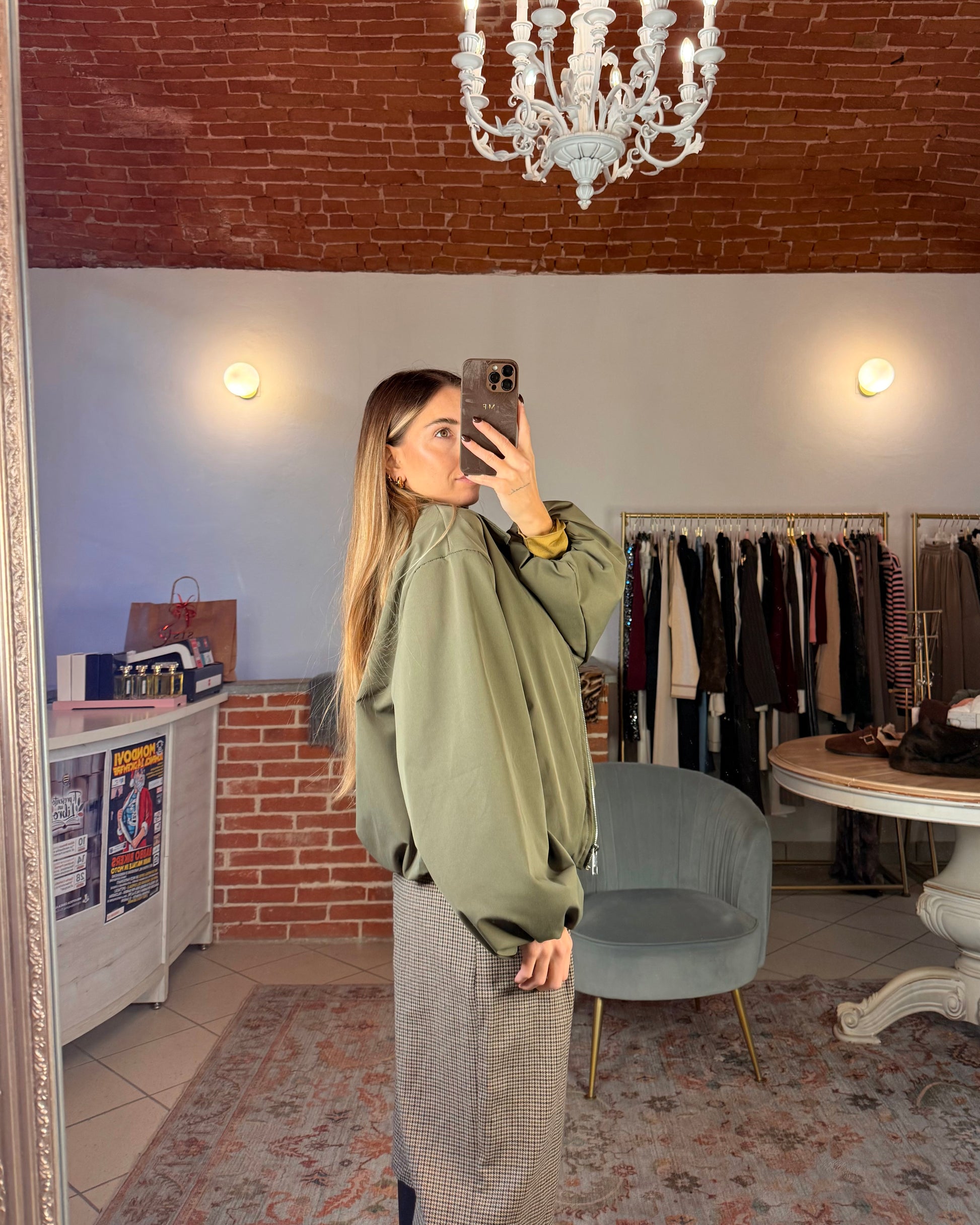 Bomber in tessuto tecnico con zip e maniche a palloncino. Taglia unica, foderato internamente.