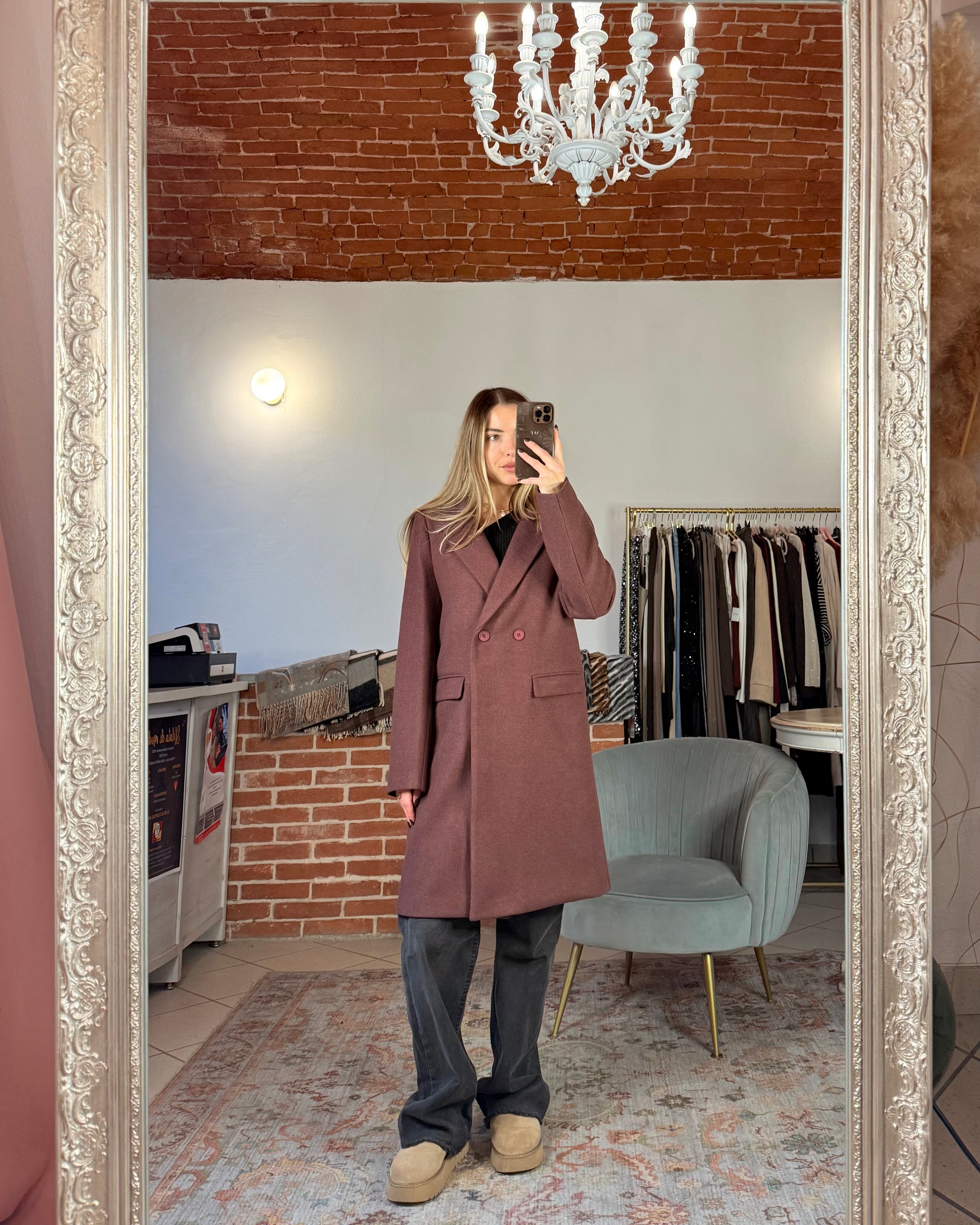 Medium length double-breasted coat with pockets and internal lining. Size S/M.