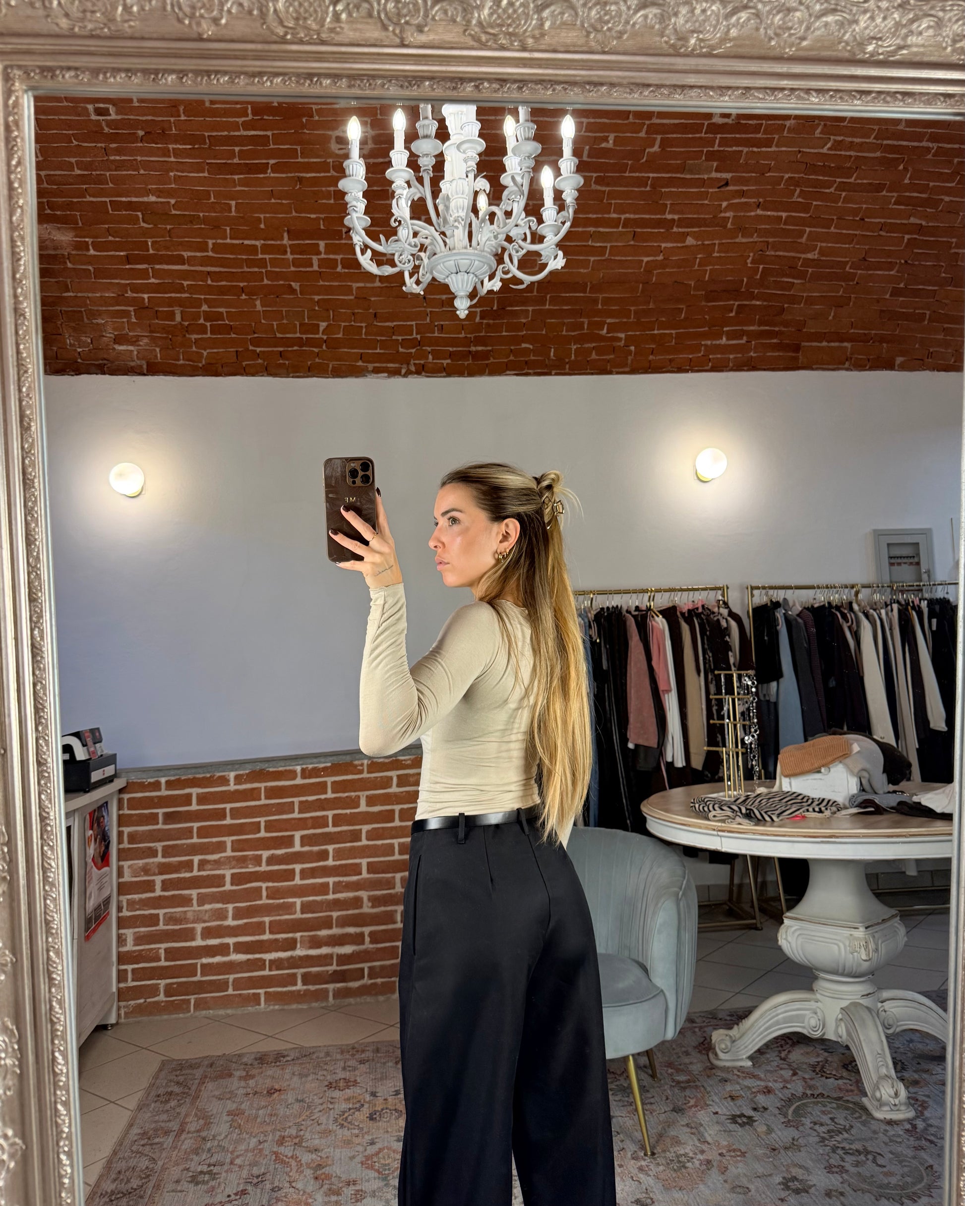 The girl in the photo is 160 cm tall and is a size 40. She wears size S.