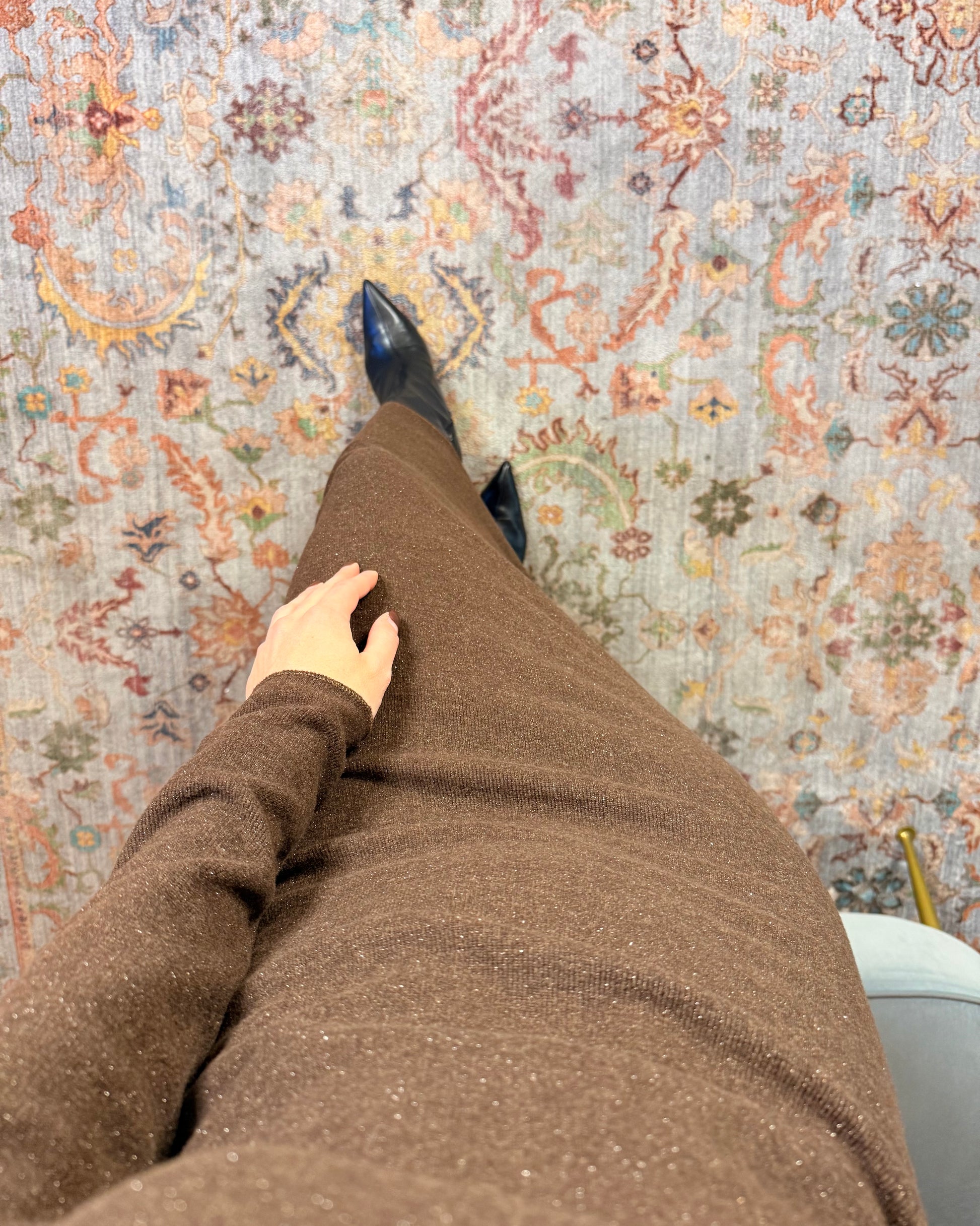 Abito lungo in maglia con lurex e colletto a lupetto.