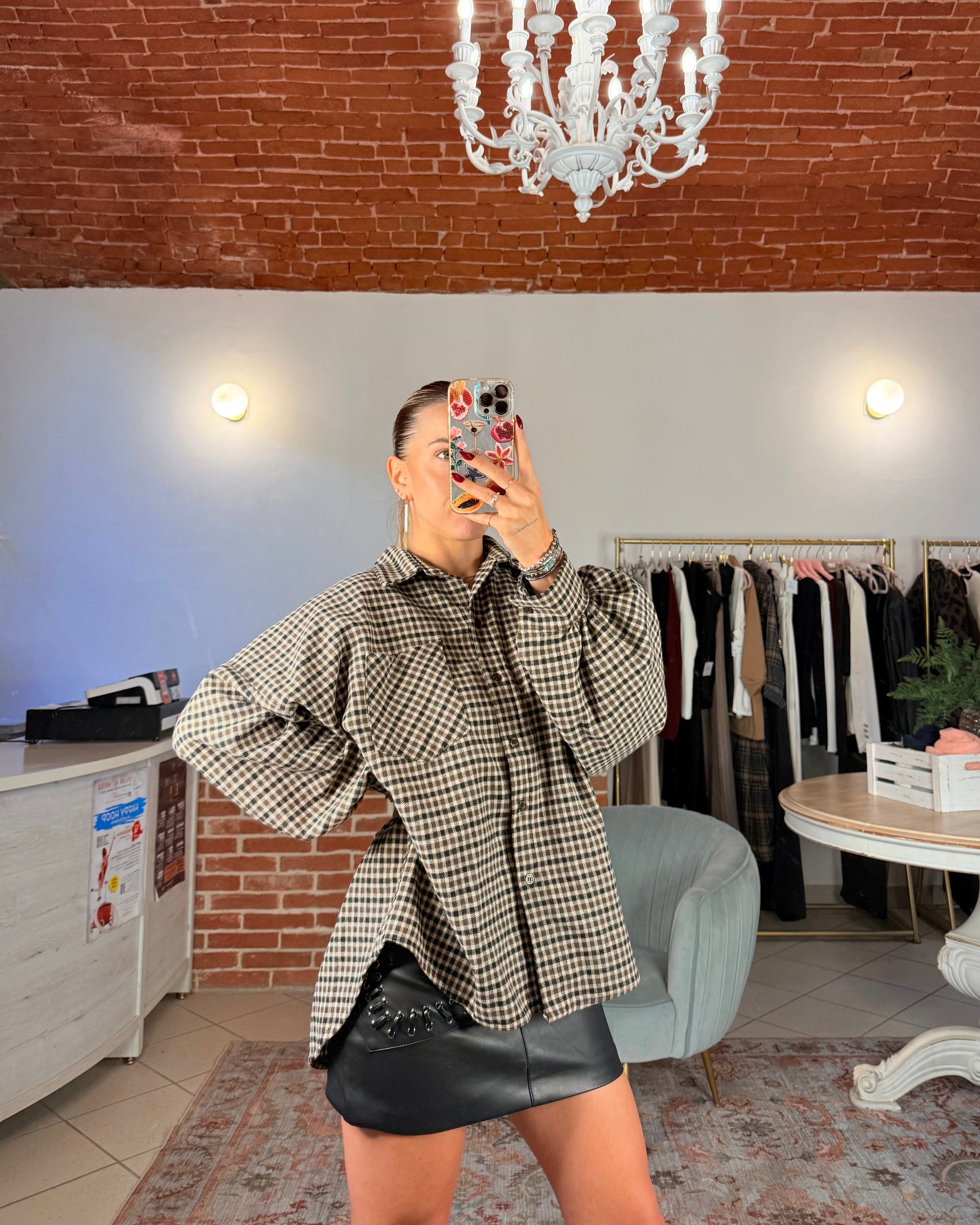 Camicia oversize in cotone flanella con maniche a palloncino.