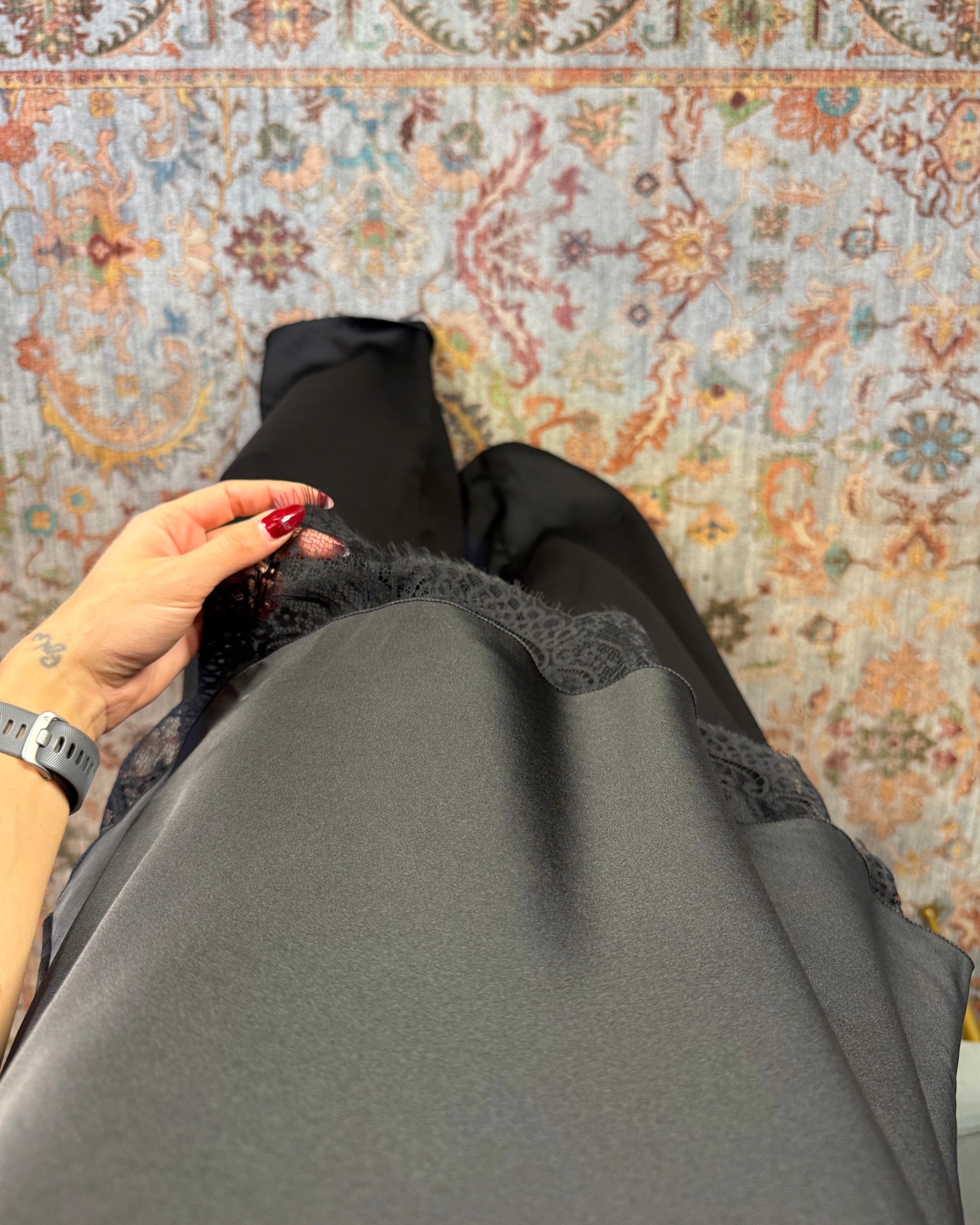 Canotta in raso con balza in pizzo e spalline elasticizzate. Taglia unica.