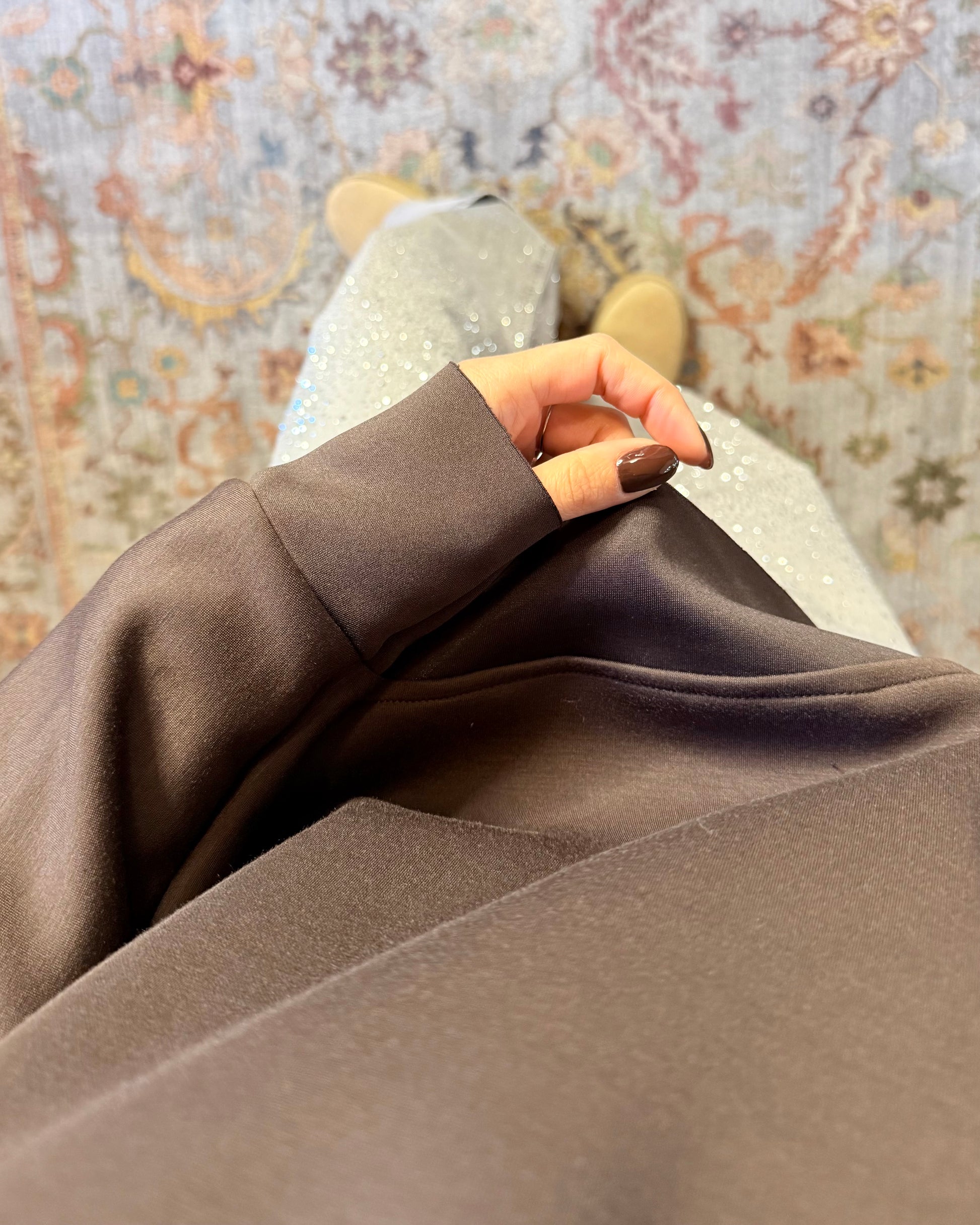 Felpa in viscosa (non felpata) taglia unica con spacchetti laterali. Taglia unica.