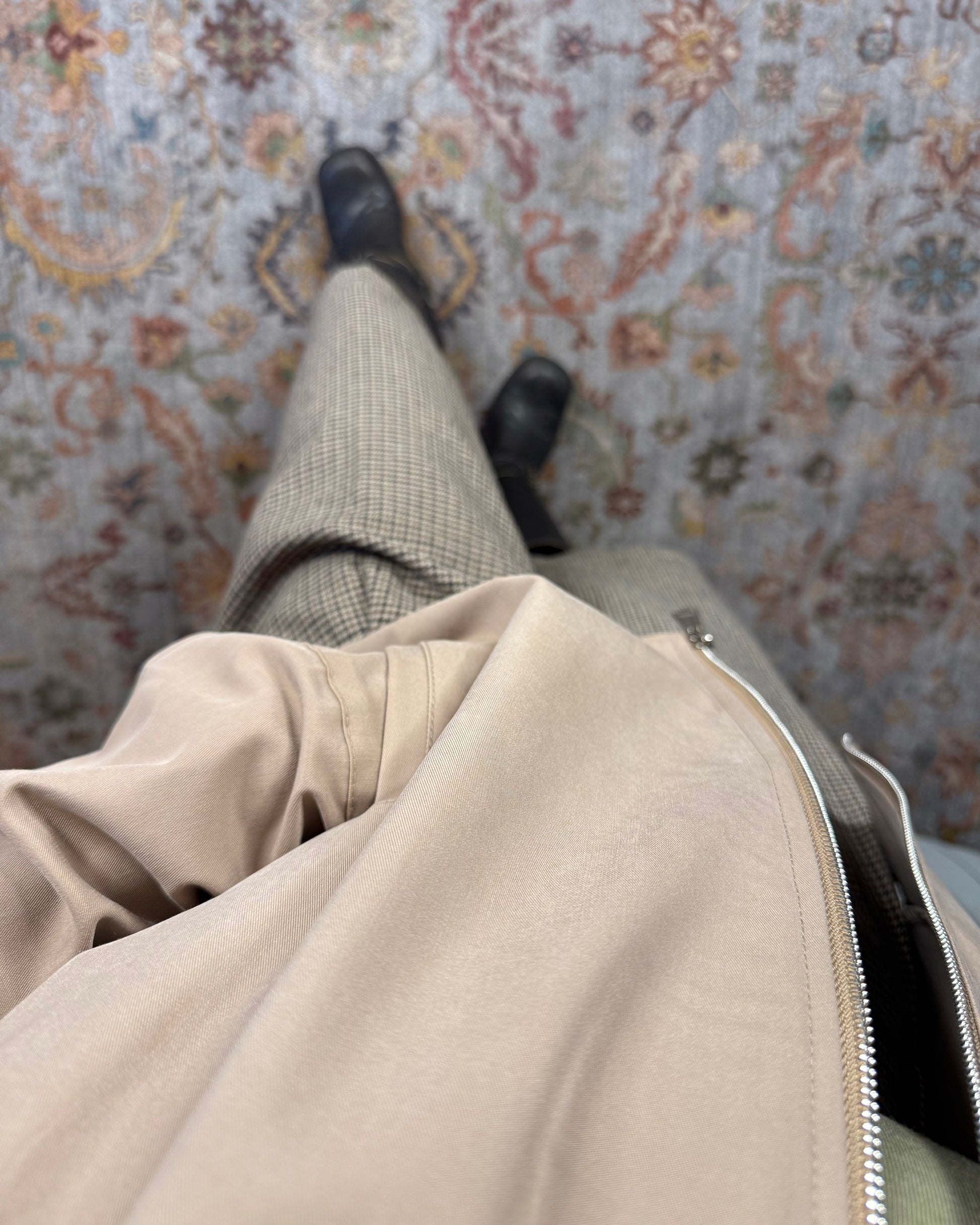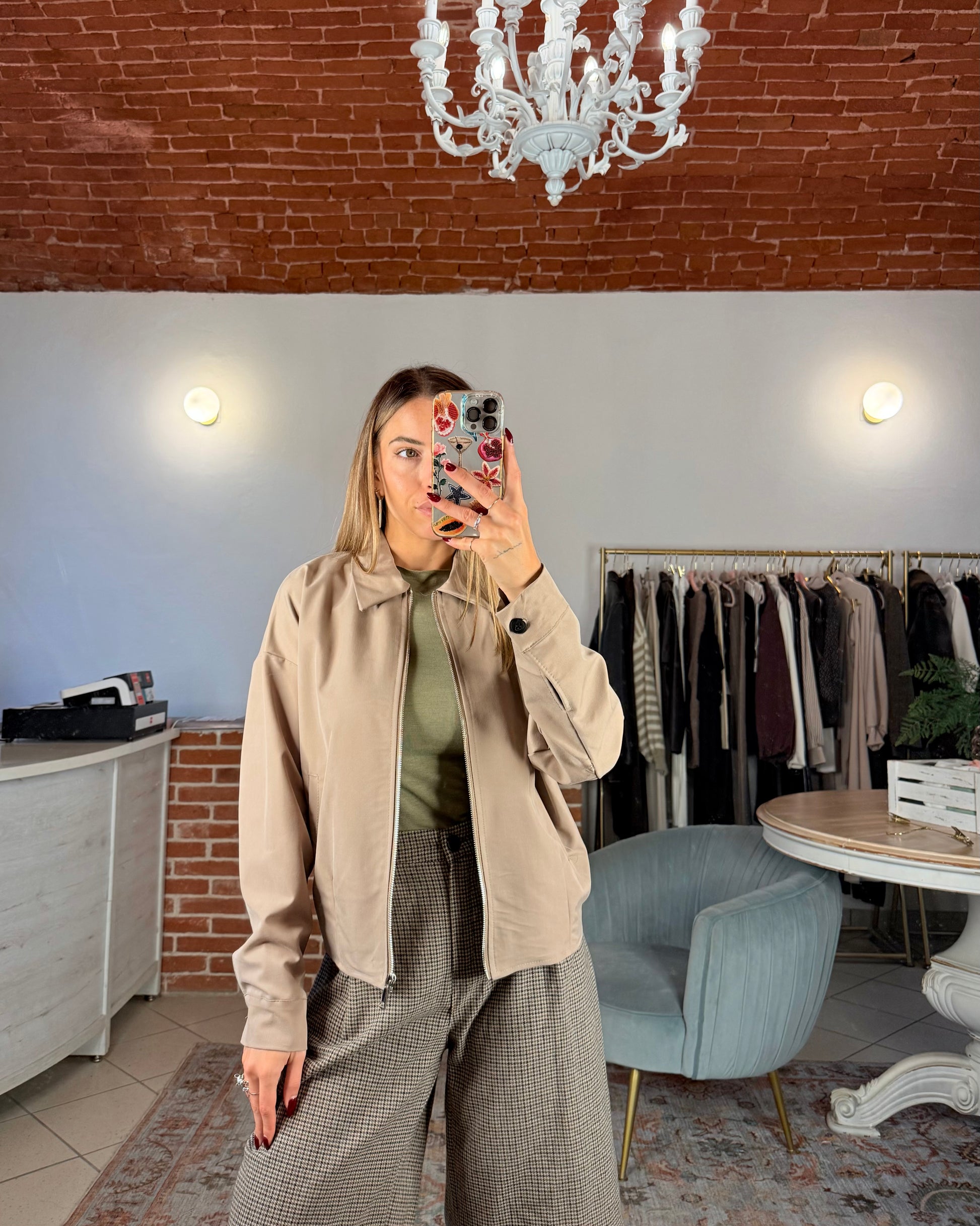 Giacca in misto viscosa con tasche laterali e zip, bottoni ai polsi.