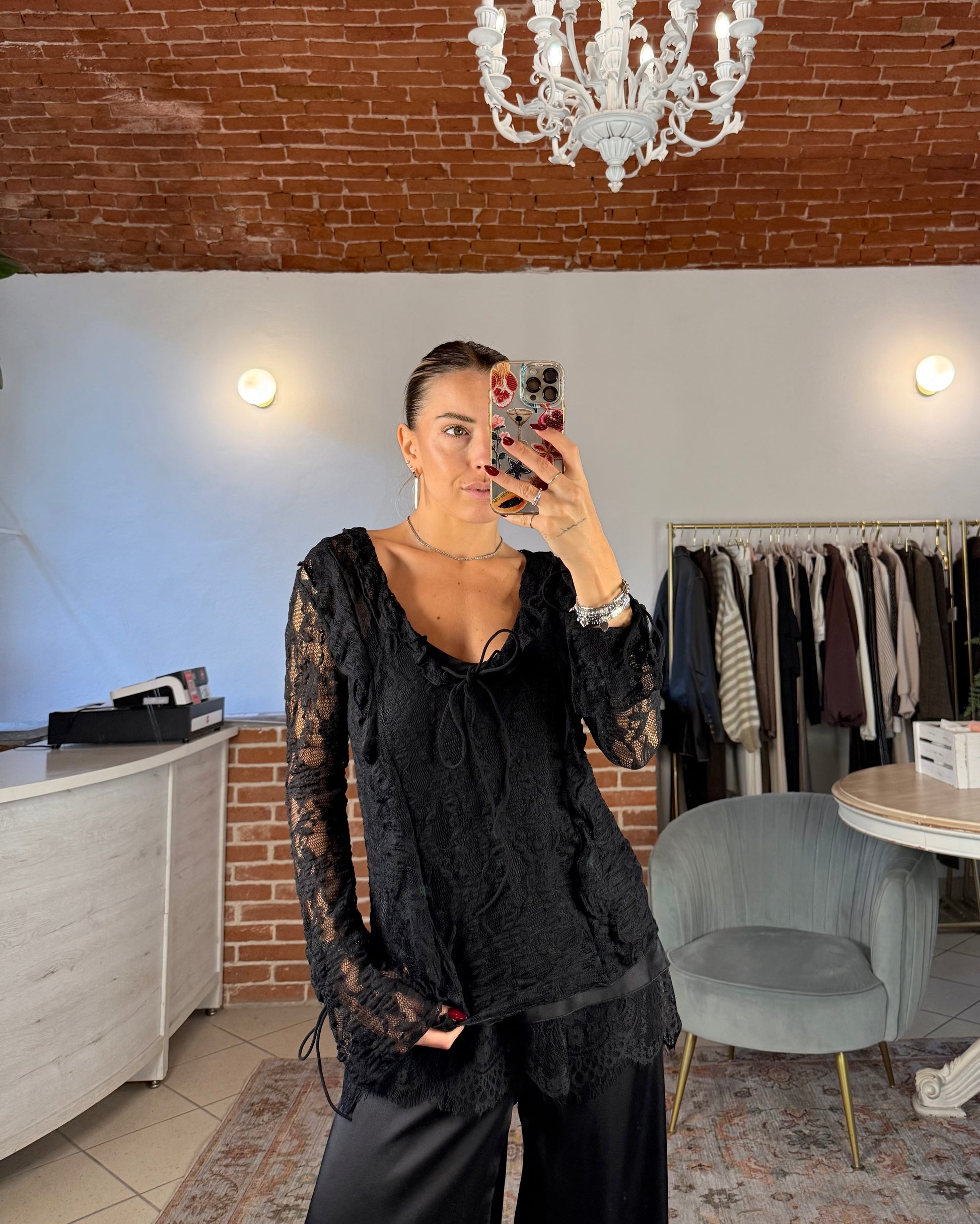 Maglietta in pizzo trasparente con laccetti. La canotta è venduta separatamente.
