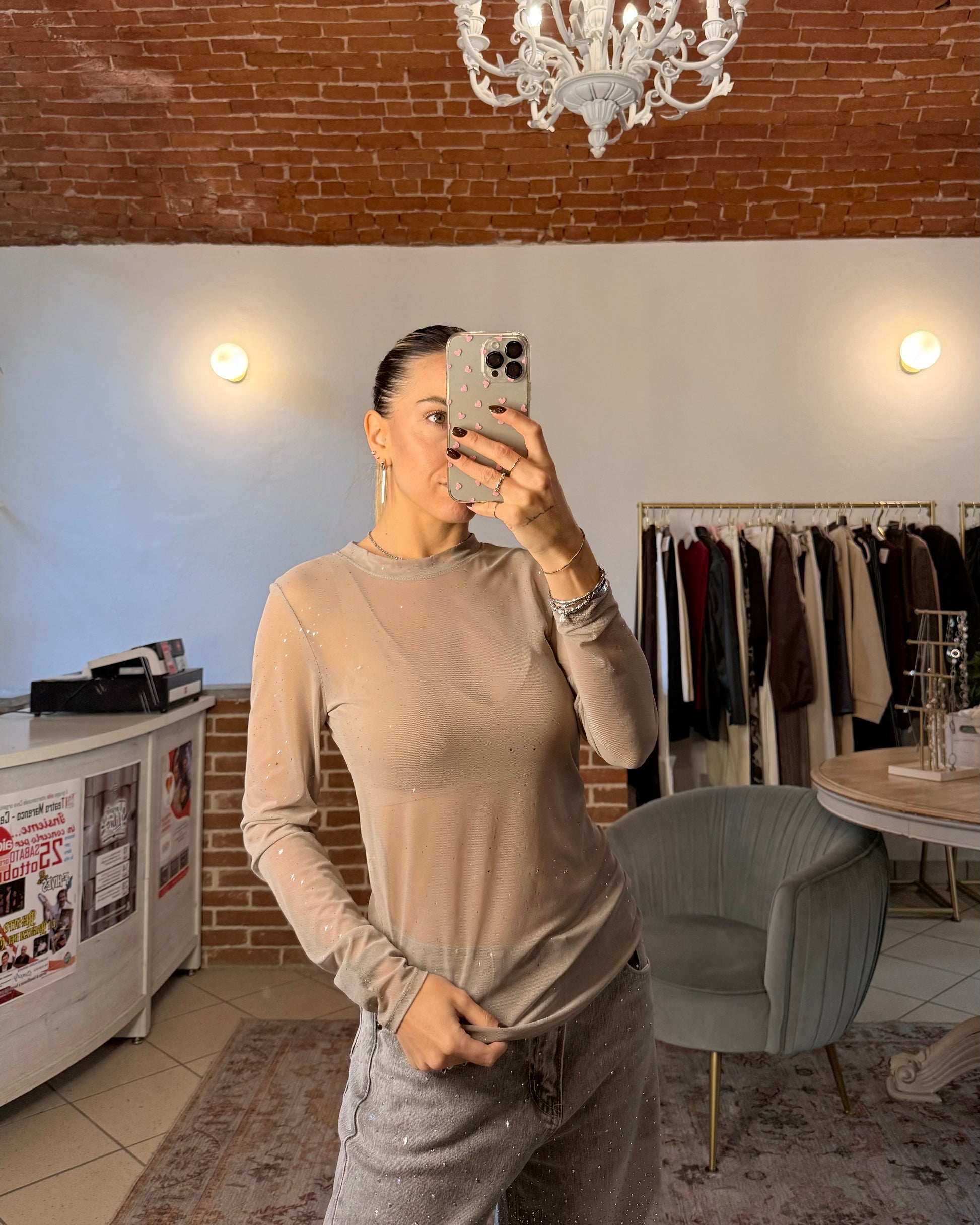 Maglietta in tulle con strass