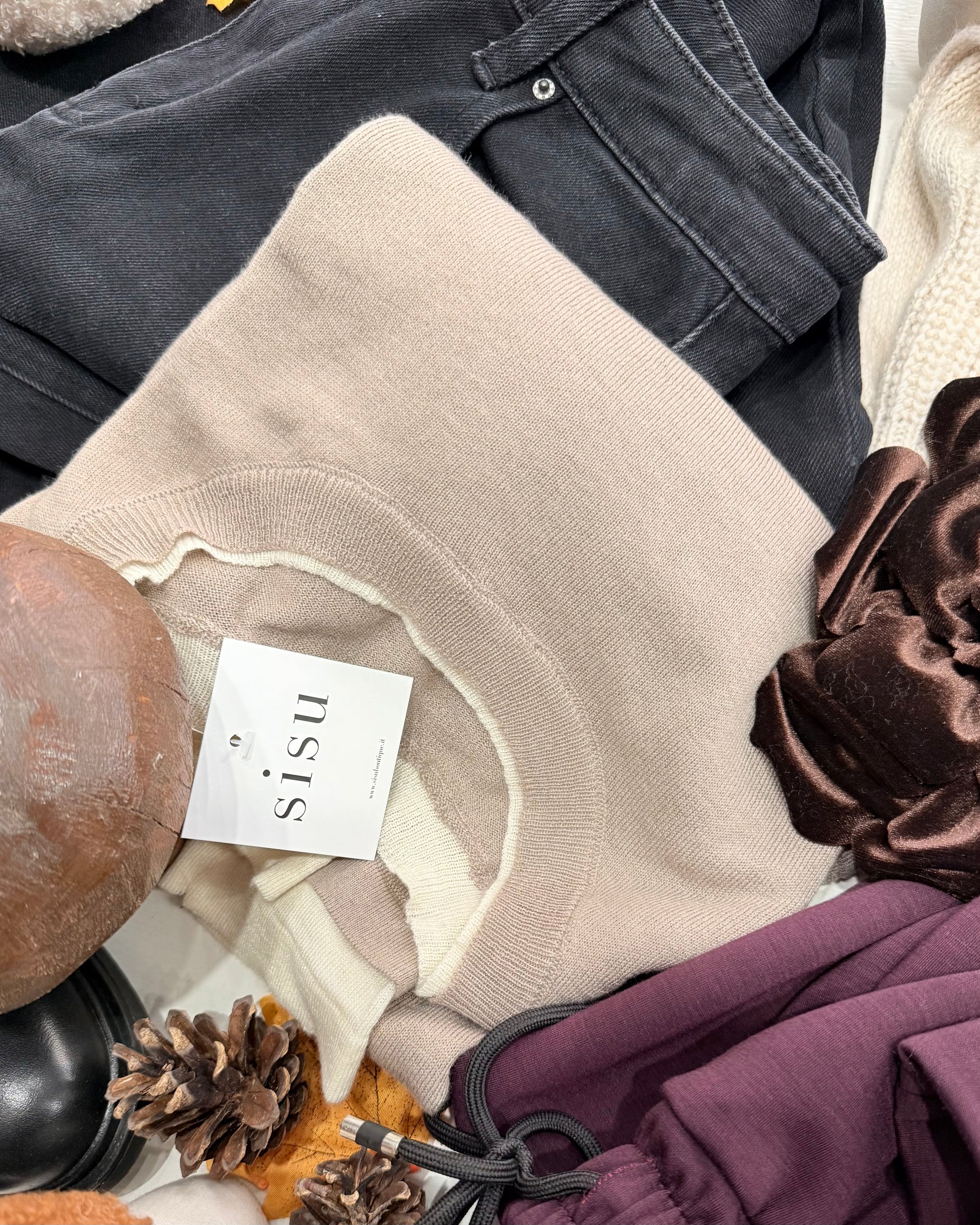 Maglioncino in viscosa misto cachemire con profili a contrasto. Taglia unica.
