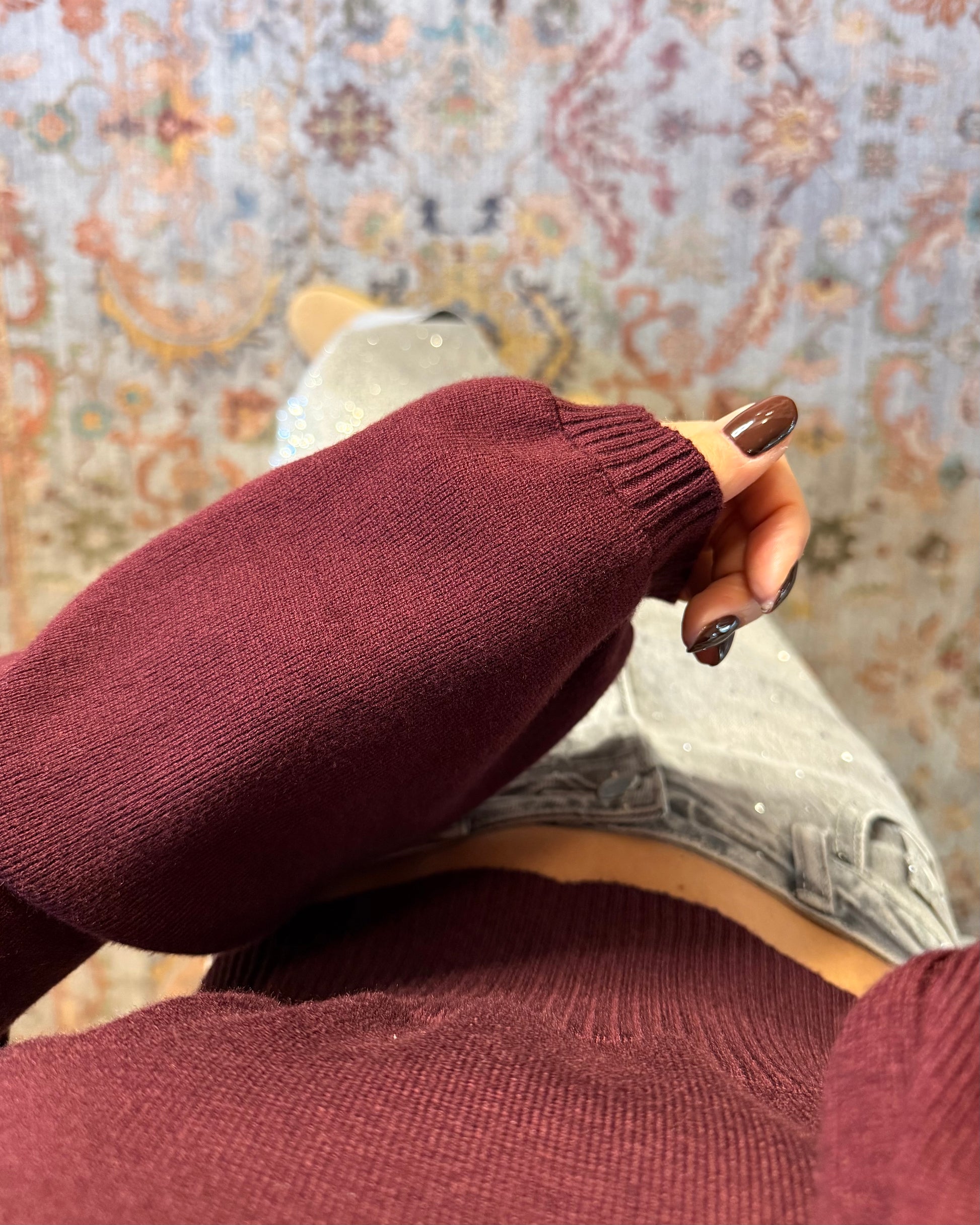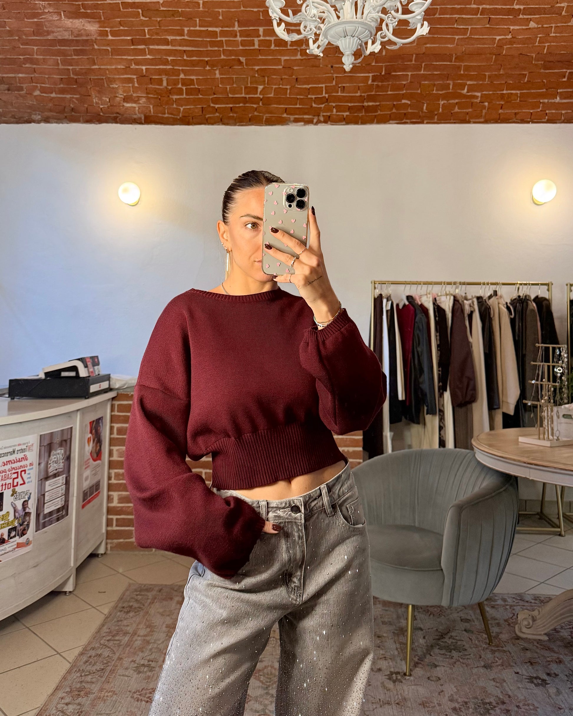 Maglione crop con maniche a palloncino. Taglia unica.