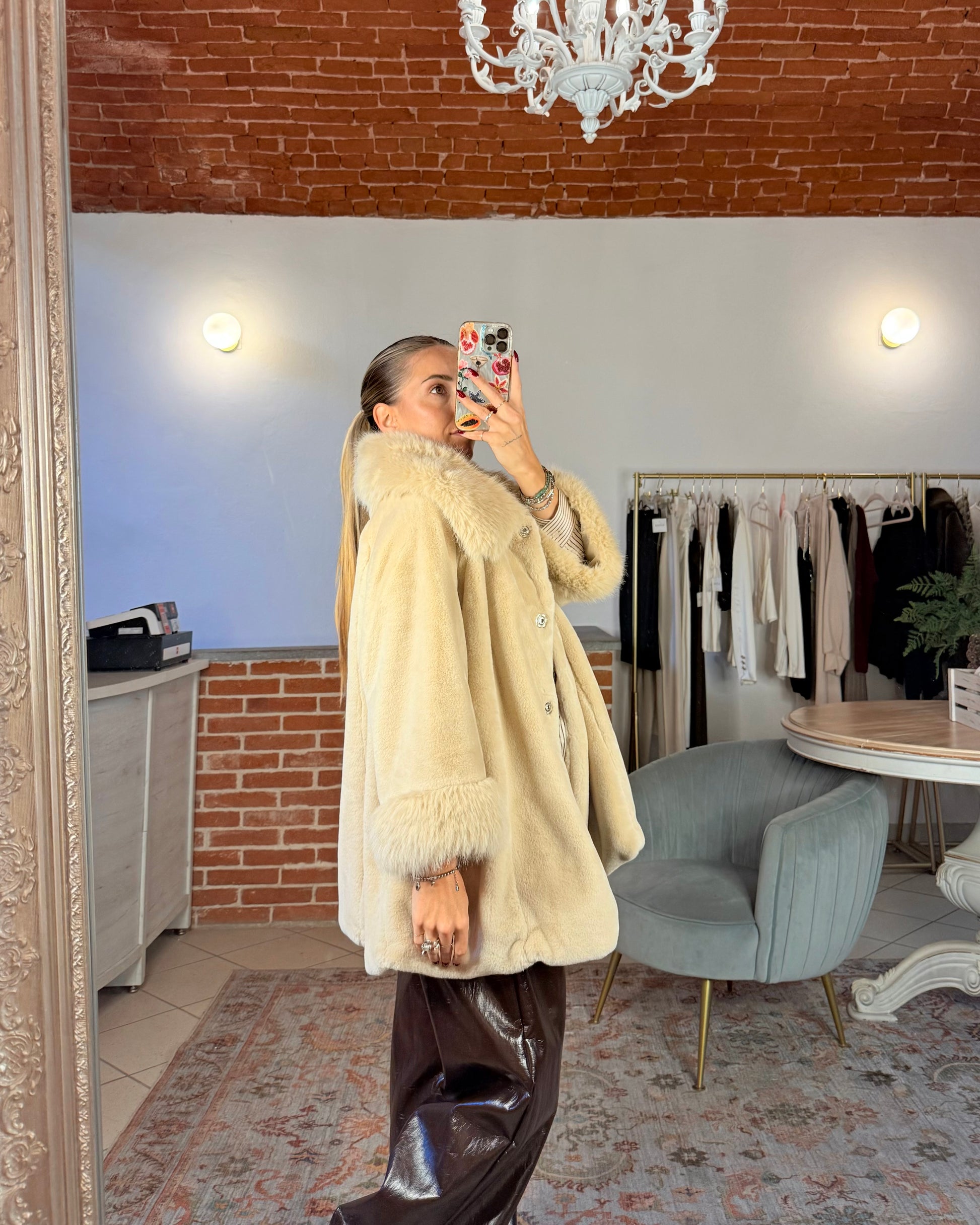 Pellicciotto scampanato con colletto e polsini, tasche laterali. Taglia unica.