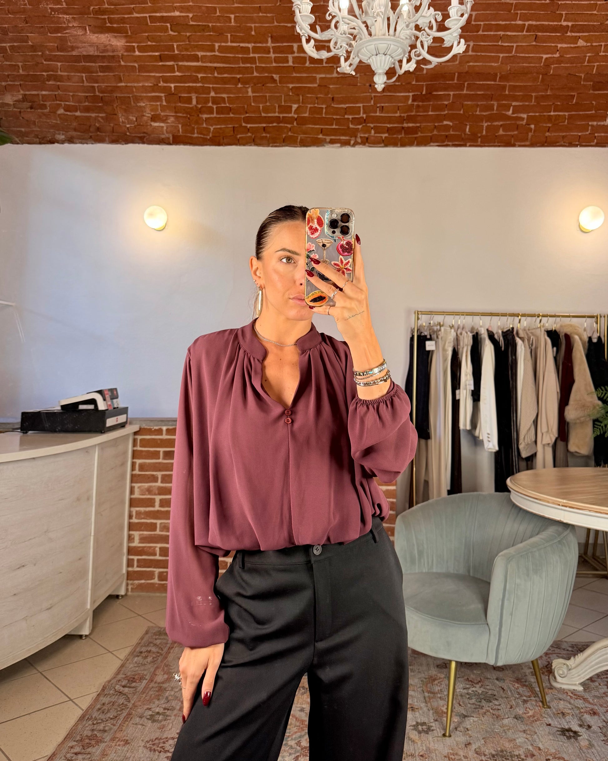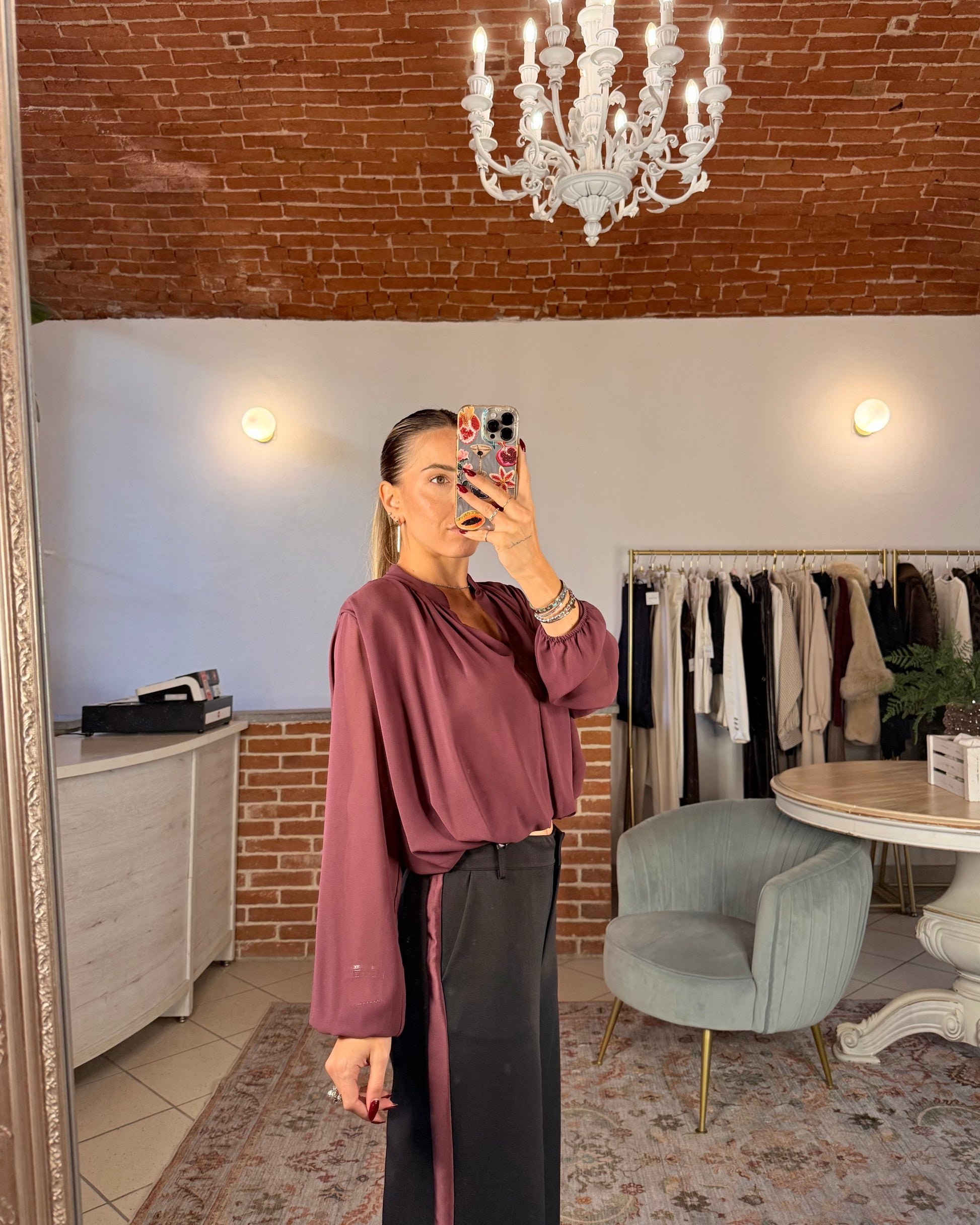 Camicetta crop modello a palloncino con elastico sul fondo, taglia S.